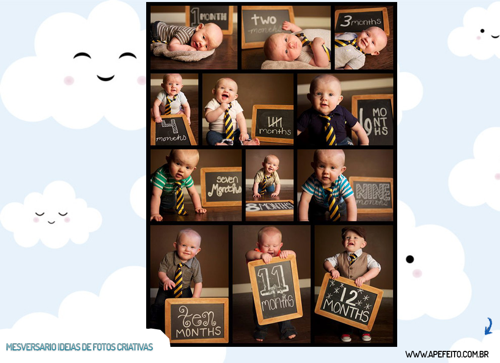 Pensando em tirar as fotos dos meses do seu bb? confira aqui algumas ideias de fotos que pode ser tiradas em casa mesmo. fotos criativas e engraçadas mesversario